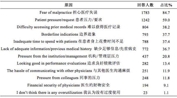 该研究共有来自美国医学会的2106名医生参与。这些医生在调研中被要求分别回答过度医疗的程度、原因、解决办法及其对医疗保健会产生哪些影响等具体问题。